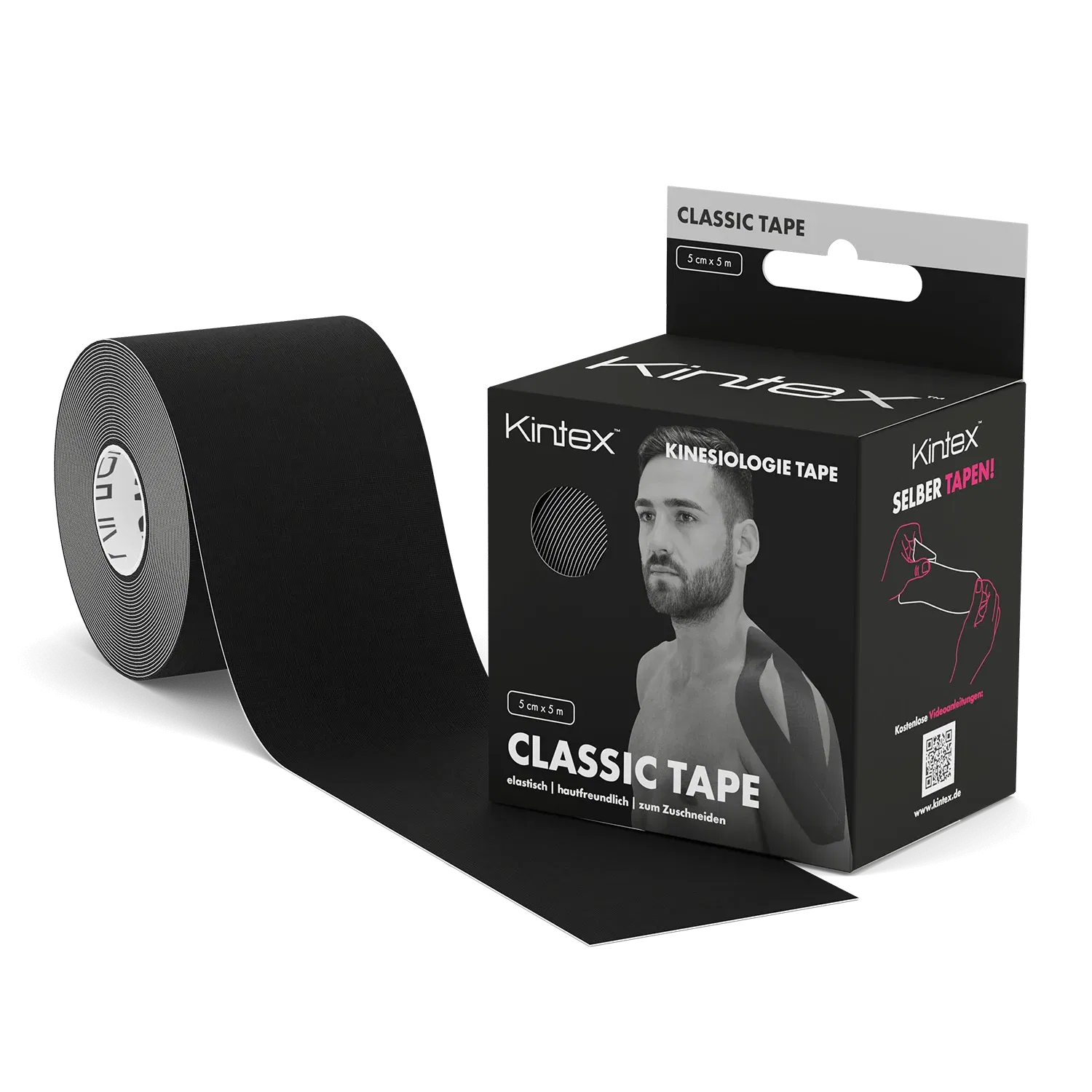 Kintex Tape este o banda elastica care nu provoaca probleme pielii, datorita structurii dispuse in valuri a unui adeziv acrilic hipoalergenic. Se adapteaza perfect pe muschi, pe meridianele corpului, pe fascii etc. Este foarte durabila, rezistenta la apa si la rupturi.